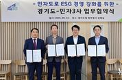 (뉴스핏 = 김수진 기자) 경기도는 24일 경기도청 북부청사에서 경기남부도로(주), 제삼경인고속도로(주), 일산대교(주) 등 도내 민자도로 사업자 3개사와 ESG(환경·사회·투명) 경영 강화를 위한 업무협약을 체결했다. 지속가능한 도로 환경 조성과 지역사회 공헌활동 활성화를 위해 마련된 이번 협약체결에는 김대순 경기도 행정2부지사와 민자도로 사업자 대표이사가 참석했다. 협약의 주요내용으로는 환경 측면에서 온실가스 배출을 최소화하도록 친환경 시설물․장비 도입에 힘쓰고, 사회적 책임으로는 지역사회 공헌활동과 도로 이용객의 안전․보건 강화를 포함한다. 지배구조 부문으로는 법과 윤리를 준수하고 투명한 기업 운영 체계를 마련하는 데 적극 협력하는 내용을 포함한다. 경기도는 민자사업자의 원활한 ESG 경영을 위해 필요시 적극적으로 행정지원할 예정이며, 협약기관 간 실무협의회를 구성하여 ESG 경영 강화에 대하여 지속적으로 논의할 계획이다. 이번 협약으로 민자도로 수익의 지역사회 환원을 통해 민자도로에 대한 ‘비싼 요금’ 또는 ‘과도한 수익 추구’라는 기존 인식을 전환하고, RE100과 같은 글로벌 환경 목표에