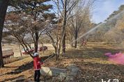 (뉴스핏 = 김수진 기자) 경기도는 13일 포천시 일동원 기산리 일원에서 포천시, 소방서, 경찰서 등 유관기관이 참여한 산불진화통합훈련을 실시했다. 도는 건조주의보와 강풍특보가 발효된 포천시에 쓰레기소각으로 추정되는 산불이 강한 바람의 영향으로 100ha(1㎢) 이상 대형산불로 확대된 구체적인 상황을 가정했다. 지상에서는 산불진화차를 배치해 산불 초기대응과 대형산불 차단을 위한 방어선 구축 등에 집중했다. 공중에서는 산불임차 헬기 1대와 드론을 활용한 소화탄을 시연해 산불 현장의 공중지원 능력을 높이는 훈련으로 이뤄졌다. 특히 봄철 훈련과는 달리 주민대피 훈련도 함께 진행됐다. 봄철 영남권의 초고속, 초대형 산불로 인한 인명피해를 방지하기 위한 것이다. 이태선 경기도 산림녹지과장은 “초고속‧대형 산불로부터 소중한 도민의 생명과 산림을 보호하기 위해 주민 대피와 산불 초동진화 등 실전 같은 대응 훈련을 했다는데 큰 의미가 있다”며 “가을철 도내 산불 피해가 최소화될 수 있도록 철저하게 준비하겠다”고 말했다. 한편 경기도는 가을철 산불방지대책본부를 지난달 20일부터 약 10일