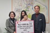 (뉴스핏 = 김호 기자) 지난 11일, 박진솔․이연후 부부는 저소득 아동 10가구에게 패딩점퍼 10벌과 양말 20켤레(100만원 상당)를 기탁했다. 박진솔․이연후 부부는 “자녀 이루다의 돌을 맞이하여 의미 있는 일을 하고 싶어 기부를 했다”며 “추운 겨울을 맞아 도움이 필요한 아동들이 따뜻하게 지낼 수 있도록 패딩점퍼와 양말을 마련했고, 아동들이 포근한 온기 속에서 행복한 겨울을 보내길 바란다”고 말했다. 조연식 복지국장은“자녀에게 나눔의 가치를 심어주시는 박진솔․이연후 부부의 모습이 존경스럽다”며 “기탁해주신 패딩점퍼와 양말은 관내 저소득 아동들에게 따뜻한 겨울을 보낼 수 있도록 잘 전달하겠다”고 전했다.