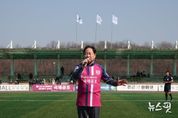 (뉴스핏 = 김수진 기자) 남양주시의회(의장 조성대)는 7일 오후 남양주종합운동장에서 열린 남양주FC 홈경기 개막전에 참석해 올해 첫 경기에 나서는 남양주FC의 승리를기원하며 열띤 응원을 펼쳤다. 이날 개막전에는 조성대 의장, 원주영 의원, 주광덕 남양주시장, 문한경 남양주FC 대표이사 등이 참석했으며, 개막전 행사는 △심판진 및 선수단 소개 △내빈 선수단 격려와 시축 △양팀 선수단 기념촬영 △경기 순으로 진행됐다. 조성대 의장은 “남양주FC의 개막전을 응원하기 위해 추운 날씨에도 참석해 힘을 모아주신 시민 여러분과 작년 종합2위라는 성적을 거두며 남양주시의 이름을 널리 알려주신 남양주FC 선수 및 관계자 여러분들께 진심으로 감사드린다”고 말했다. 이어 “2026년에는 꼭 우승하여 K3 리그로 승격할 수 있는 영광스러운 한 해가 되길 바란다”고 격려했다.