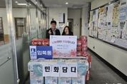 (뉴스핏 = 김호 기자) 지난 26일, 당수동 소재 ‘민화담다’는 입북동 행정복지센터를 방문해 라면 20박스, 휴지 10개를 전달했다. 이번에 기탁한 물품은 ‘민화담다’ 직원들이 어려운 이웃을 생각하며 기부금을 모아 마련했으며, 입북동 지역사회보장협의체를 통해 복지사각지대, 장애인, 한부모가정, 독거어르신 등에 전달될 예정이다. 이경영 입북동장은 “아름다운 나눔으로 우리 사회가 좀 더 따뜻해지고 있다.”며 “기탁해 주신 물품은 어려운 이웃들을 위해 잘 전달하겠다.”라고 말했다. 한편 입북동행정복지센터는 복지사각지대를 발굴하여 긴급 지원 및 사례관리 대상자 연계 등 지역사회에 소외된 이웃에 대한 관심으로 다양한 활동을 펼쳐 나가고 있다.
