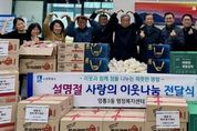 (뉴스핏 = 김호 기자) 수원특례시 영통구 영통3동은 지난 11일, 다가오는 설 명절을 맞아 관내 취약계층을 위한 이웃나눔 전달식을 진행했다. 이번 전달식은 설 명절을 맞아 경제적 어려움을 겪는 저소득층과 복지사각지대 이웃들이 따뜻한 명절을 보낼 수 있도록 마련됐다. 후원물품은 햄, 라면, 생필품 등 다양한 품목으로 구성됐으며, 관내 취약계층 200여 세대에 전달될 예정이다. 진성원 영통3동 단체협의회장은 “설 명절을 맞아 여러 기관이 뜻을 모아 지역 이웃들을 위한 나눔에 함께 참여했다. 각 기관의 정성이 모인 후원물품이 어려운 이웃들의 생활에 작은 보탬이 되길 바란다”고 전했다. 김인태 영통3동장은 “여러 기관이 함께해 주신 소중한 후원에 깊이 감사드린다. 전달된 후원물품은 도움이 필요한 이웃들에게 전달해 따뜻한 명절을 보낼 수 있도록 하겠다”고 말했다.