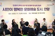 (뉴스핏 = 김수진 기자) 안양시는 13일 오전 10시 30분 평촌아트홀 1층 카페 아트림에서 ‘시민이 행복한 문화예술 도시, 안양’을 주제로 (재)안양문화예술재단과 민선 8기 3주년 공공·협력기관 순회 간담회를 개최했다. 이번 간담회는 민선8기 3주년을 맞아 안양시 문화예술 정책의 주요 성과를 공유하고, 현장 예술인과 시민의 의견을 직접 청취하기 위해 마련됐다. 행사에는 안양 지역 예술인과 문화단체 관계자, 시민 등 120여 명이 참석해 안양의 문화예술 비전과 발전 방향에 대해 활발한 소통의 시간을 가졌다. 간담회에서는 ▲시민이 주인공이 되는 ‘안양춤축제’ ▲생활문화로 피어나는 ‘마을축제 지원사업’ ▲지역·청년예술인 창작활동 지원 ▲안양박물관과 공공예술프로젝트(APAP) 등 시민이 함께 만들어가는 다양한 문화예술 사례가 소개됐다. 안양춤축제는 안양만의 축제가 아니라 관광형 축제로 거듭나고 있다. 지난 9월 3일간 열린 축제에는 총 14만2,000여명이 참여했는데, 이 중 40%가 타 시도민으로 추산된다. 춤축제 기간 열린 유스클럽챔피언십의 한 고등학생 참가자는 “대회 분위기가 생각보다 훨씬 뜨거웠고 행복했다”
