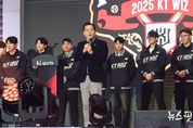 (뉴스핏 = 김호 기자) 이재준 수원특례시장이 29일 ‘2025 kt 위즈 팬페스티벌’에서 “팬 한분 한분의 열렬한 응원을 발판 삼아 내년 시즌에도 ‘마법 같은 경기’ 펼치길 응원한다”며 “앞으로도 변함없는 응원과 우렁찬 함성으로 kt위즈와 함께 해주시길 바란다”고 말했다. 수원컨벤션센터 전시홀에서 열린 이날 행사에는 kt 위즈 야구팬(시즌권 회원 등), kt 위즈 1·2군 선수 등 5000여 명이 참석했다. 행사는 팬 사인회, 야구 꿈나무 대상 체험 레슨, 팬과 선수가 함께하는 듀엣 가요제 등으로 진행됐다.