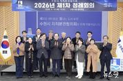 (뉴스핏 = 김호 기자) 이재준 수원시장은 12일 시청 집무실에서 자치분권협의회 위원들과 간담회를 열고, 자치분권 활성화 방안을 논의했다. 이재준 시장은 “진정한 자치분권을 실현하려면 헌법 개정으로 지방정부의 자율성과 독립성을 보장받는 것이 중요하다”며 “수원시 자치분권협의회가 선도적인 역할을 해주길 바란다”고 당부했다. 간담회 후 시청 중회의실에서 열린 2026년 제1차 정례회의에는 구균철(경기대학교 경제학부 교수) 의장과 위원들이 참석해 ‘2026년 자치분권 촉진·지원 추진 계획(안)’을 심의했다. ‘지방분권 개헌 공론화 및 시민 주도적 참여 기반 강화’를 목표로 하는 이번 계획은 ▲지방분권 개헌 공론화 ▲주민참여 교육 ▲홍보 및 기록화 ▲권한 확보 등 4개 분야의 10개 사업으로 구성된다.
