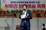 (뉴스핏 = 김수진 기자) 양평군 서종면은 지난 11일 서후리 마을회관 일원에서 ‘제3회 서후리 문화예술축제 및 탁구장 개관식’을 성황리에 개최했다. 이날 행사에는 홍주표 서종면장과 박명숙·이혜원 경기도의회 의원, 지역 기관·단체장, 평생학습센터 회원, 주민 등 200여 명이 참석해 마을의 문화와 소통이 어우러진 뜻깊은 시간을 가졌다. 행사에서는 평생학습센터 회원들이 준비한 다양한 작품 전시와 공연이 진행되며, 주민들의 재능과 열정을 나누는 무대가 마련됐다. 이어 진행된 탁구장 개관식에서는 새롭게 조성된 생활체육 공간을 둘러보며, 향후 마을 공동체의 건강한 여가활동 거점으로서의 역할에 대한 기대를 나눴다. 홍주표 서종면장은 “주민 여러분이 함께 준비한 문화예술축제와 탁구장 개관은 서종면 공동체의 또 다른 도약을 상징한다”며, “앞으로도 주민이 주도하는 생활문화와 건강한 여가문화가 자리 잡을 수 있도록 지속적인 지원을 아끼지 않겠다”고 밝혔다. 한편, 이번 행사는 지역 주민의 참여로 이뤄진 생활문화 축제이자 건강한 공동체 회복의 장으로, 문화와 체육이 조화를 이루는 서종면의 새로운 지역 축제로 평가받고 있다.