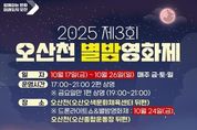 (뉴스핏 = 김수진 기자) 오산시는 오는 17일부터 26일까지 매주 금·토·일 저녁, 오산천(오색문화체육센터 뒤편)에서 시민들이 야외에서 영화를 즐길 수 있는 '2025 제3회 오산천 별밤영화제'를 개최한다고 14일 밝혔다. 이번 영화제는 남녀노소 누구나 즐길 수 있는 총 10편의 애니메이션과 영화를 상영하며, 오산천을 방문하는 시민이라면 누구나 자유롭게 관람할 수 있다. 특히 올해는 관람객 편의를 위해 ‘배달음식 픽업존’을 운영하여, 휴대폰 앱으로 주문한 음식을 지정된 장소에서 간편하게 수령할 수 있다. 관람객들은 돗자리나 방석 등을 지참해, 자연 속에서 맛있는 음식과 함께 여유로운 영화 관람을 즐길 수 있다. 시 관계자는 “도심 속 자연과 문화가 조화를 이루는 오산천에서 열리는 이번 별밤영화제가 시민들에게 힐링과 특별한 문화 체험의 기회가 되길 바란다”고 전했다.