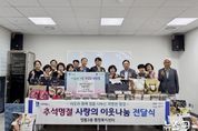 (뉴스핏 = 김호 기자) 수원시 영통구 매탄2동 새마을문고은 지난 29일, 추석을 맞아 관내 e편한세상 경로당에 두유, 손톱깎이 세트, 백미 10kg, 커피믹스, 비즈팔찌를 기부했다. 매탄2동 새마을문고는 2024년 9월, 매탄2동 e편한세상아파트 경로당과 정기적 후원 및 자원봉사 연계를 위한 1:1 결연 협약식을 진행했으며, 협약 이후 수차례 경로당에 후원 물품을 기부했다. 이날 매탄2동 새마을문고는 두유, 손톱깎이 세트, 백미10kg, 커피믹스, 비즈팔찌를 기부했으며, 특히 비즈팔찌는 지난 7월, 매탄2동 새마을문고를 방문한 학생들과 만들었던 팔찌라 더욱 의미가 크다. 이인실 새마을문고 회장은 “앞으로도 관내 어르신들께 필요한 사항에 대해 적극적으로 지원하겠으며, 자주 찾아뵙고 지역사회 나눔 분위기를 확산하겠다”고 말했다. 승병숙 매탄2동장은 “정을 나눠주신 새마을문고 회원분들께 감사드리며, 앞으로도 경로당 자매결연 사업이 활성화되어 따뜻한 매탄2동이 되도록 지원을 이어나가겠다”고 전했다.