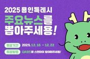 (뉴스핏 = 김수진 기자) 용인특례시는 ‘시민과 함께 뽑은 2025년 용인특례시 주요 뉴스’ 선정을 위해 22일까지 온라인 설문조사를 한다고 17일 밝혔다. 시는 한 해 동안 시가 추진한 정책이나 사업 중 언론의 주목을 받고, 시민의 체감도가 높았던 사업을 주요 뉴스로 선정해 공개하고 있다. 시민, 직원, 출입 기자를 대상으로 온라인 투표를 진행하며, 투표 결과를 합산해 많은 표를 얻은 순서대로 주요 뉴스를 선정한다. 투표에 참여하면 시민의 생활과 밀접한 사업, 시의 주요 정책, 시정 현안 등을 기준으로 사전 선정한 30개 주요 뉴스 중 최대 5개 뉴스를 선택할 수 있다. 투표는 네이버 폼으로 진행한다. 용인특례시 홈페이지나 공식 인스타그램, 블로그 등 사회관계망서비스(SNS)에 게시된 큐알(QR)코드를 통해 접속할 수 있다. 결과는 오는 23일 시 홈페이지와 SNS를 통해 발표한다. 시 관계자는 “2025년은 용인특례시가 문화·스포츠·도시개발 등 다양한 분야에서 한 단계 이상 성장한 한 해였다”며 “한 해를 마무리하며 모두가 용인의 성장 여정을 함께 되짚어보고, 더 나은 미래를 향한