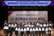(뉴스핏 = 김수진 기자) 용인특례시는 30일 시청 에이스홀에서 ‘제72회 경기도체육대회 2026 광주’에 참가하는 선수단 출정식을 개최했다. 제72회 경기도체육대회는 4월 16일부터 18일까지 3일간 광주시 일원에서 열리며, 용인특례시는 육상, 축구, 태권도 등 26개 종목에 선수 312명이 출전한다. 출정식에는 이상일 시장을 비롯해 체육회 임원과 종목단체장, 선수단 등 약 300명이 참석했다. 이상일 시장은 격려사를 통해 “그동안 대회를 위해 열심히 준비해 온 선수단 여러분들 정말 자랑스럽다”며 “이번 대회에서 갈고닦은 실력을 마음껏 발휘해 원하는 성과 거두시길 바라고, 모두가 한 단계 더 성장하는 계기가 되길 바란다”고 말했다. 이 시장은 “선수들이 더 좋은 환경에서 훈련하고 기량을 펼칠 수 있도록 지원을 확대하기 위해 노력하고 있다”며 “앞으로도 여러분과 함께 힘과 지혜를 모아 오늘보다 더 나은 내일을 만들어가겠다”고 했다. 이 시장은 출정식 이후 집무실에서 직장운동경기부 감독과 종목단체 회장단을 대상으로 간담회를 열어 선수단을 격려하고, 현장의 애로사항과 건의사항을 청취했다.