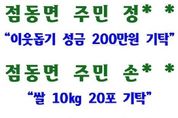 (뉴스핏 = 김호 기자) 여주시 점동면에 조용하지만 깊은 울림을 전하는 따뜻한 나눔이 이어지고 있다. 점동면에 따르면, 크리스마스를 앞둔 최근 한 주민이 “누군가의 겨울이 조금 더 따뜻해지길 바란다”는 마음을 담아 이름을 밝히지 않은 채 기부를 전해왔다. 기부자는 어떠한 소개도 사양하며, 자신보다 도움이 필요한 이웃을 먼저 떠올리고 싶다는 뜻만 남겼다. 이와 함께 점동면 주민 정** 씨가 어려운 이웃을 위해 성금 200만원을 기탁했으며, 주민 손** 씨 역시 정성과 온기를 담은 쌀 10kg 20포를 전달했다. 익명으로 기탁된 성금과 쌀은 관내 취약계층과 독거어르신, 복지사각지대 가구에 소중히 전달될 예정이다. 신광식 점동면장은 “이름 없이 전해진 따뜻한 손길이야말로 우리 지역 공동체를 지탱하는 가장 큰 힘”이라며 “기탁해 주신 소중한 마음을 잊지 않고 도움이 꼭 필요한 이웃에게 책임 있게 전달하겠다”고 감사의 뜻을 전했다. 점동면은 이번 기부를 계기로 서로를 향한 작은 배려와 나눔이 연말을 넘어 일상 속에서 계속 이어질 수 있도록 지역 복지 안전망을 더욱 세심하게 살펴 나갈 계획이다.