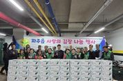 (뉴스핏 = 김호 기자) 파주시 파주읍 새마을부녀회와 새마을지도자협의회는 지난 11일, 겨울을 앞두고 지역 내 어려운 이웃을 위한 ‘사랑의 김장김치 나눔 행사’를 실천했다고 밝혔다. 이날 행사는 새마을부녀회원들과 지도자협의회원들이 이틀에 걸쳐 협력해 진행됐다. 전날인 10일에는 배추 절이기와 재료 손질 등 사전 준비를 진행했으며, 11일에는 본격적으로 속 넣기와 포장 작업을 이어가며 정성껏 김치를 담갔다. 완성된 김장김치 119상자는 새마을부녀회원이 관내 저소득 독거 어르신 가정에 직접 방문하며 전달해 따뜻한 정성을 전했다. 이선희 파주읍 새마을부녀회장은 “회원들과 함께 마음을 모아 담근 김치가 이웃들에게 힘이 되길 바란다”라며 “앞으로도 여성의 섬세한 손길로 지역 나눔을 실천하겠다”라고 전했다. 변봉수 파주읍 새마을지도자협의회장은 “지역사회가 함께 나누고 배려할 때 더 따뜻해진다”라며 “작은 정성이지만 이웃들에게 힘이 되길 바란다”라고 말했다. 윤상기 파주읍장은 “매년 이어지는 김장김치 나눔 행사는 지역 공동체의 온정을 느낄 수 있는 소중한 자리”라며 “앞으로도 민관이 협력해 복지 사