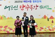 (뉴스핏 = 김호 기자) 수원시 영통구 매탄4동은 25일 매탄공원 다목적체육관에서 매탄4동 산드래미발전위원회(위원장 장대현) 주관으로 ‘2025년 매탄4동 산드래미 마을 경로잔치’를 개최했다. 지역사회 전반에 경로의 가치를 되새기고 오랜 세월 지역의 든든한 버팀목이 되어주신 어르신들께 감사의 마음을 전하기 위해 마련된 이번 행사에는 관내 72세 이상 어르신 1,000여 명이 참석했으며, 국회의원, 도·시의회 의원, 영통구청장, 유관기관 및 사회단체장 등 많은 내빈도 함께했다. 이재준 수원특례시장은 축하 메시지를 통해 어르신들의 건강과 안녕을 기원하고, 평생 지역 발전을 위해 헌신해 오신 어르신들께 깊은 감사와 존경의 뜻을 전했다. 이날 행사에서는 노인복지 기여자·효행자·모범어버이 등 노인복지 유공자에 대한 표창 수여식이 진행됐으며, 장수 어르신 2명에게 기념품을 전달했다. 더불어 다채로운 축하공연과 정성껏 준비한 오찬이 마련되어 어르신들께 즐거운 시간을 선사했다. 또한 평소 다양한 사회공헌 프로그램을 통해 수원시와 지역사회 내 소외되고 도움이 필요한 계층에게 사랑과 나눔을 실천한 관내 기업 삼성전기에서 어르신들