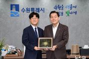 (뉴스핏 = 김호 기자) 미국 아리조나한인회 임애훈 한인회장이 25일 수원시청을 방문해 이재준 수원시장에게 감사패를 전달했다. 아리조나는 수원시의 국제자매도시인 피닉스시가 있는 주다. 아리조나주 한인회는 “2024년 피닉스시 방문을 인연으로, 한인회 주요 행사마다 축하 인사와 격려를 통한 이재준 시장님의 관심과 따뜻한 성원은 교민 사회 연대를 굳건히 하고, 조국에 대한 애국심을 고양하는 데 큰 힘이 됐다”며 “아리조나주 한인사회를 대표해 교민들 정성을 모아 존경과 감사의 마음을 전달한다”고 밝혔다. 수원시와 피닉스시는 2021년 10월 자매결연을 했다. 2024년 1월 피닉스시를 방문한 이재준 시장은 아리조나한인회와 함께 ‘아리조나 한국전 참전비’를 참배하고, 아리조나한인회와 간담회를 했다. 이날 간담회에는 한국전 참전용사 1명이 함께했다. 임애훈 회장은 이날 아리조나주 마크 켈리(Mark Kelly) 상원의원의 친서를 이재준 시장에게 전달했다. 마크 켈리 의원은 친서에서 “아리조나는 피닉스와 수원이 자매도시로서 쌓아온 굳건하고 변함없는 우정을 소중히 여기고 있다”며 “수원시의 지속적인 번영과 수원