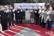 (뉴스핏 = 김호 기자) 이재준 수원특례시장이 21일 천도교 수원대교구 독립운동 안내표지판 제막식에 참석했다. 천도교 수원대교구는 수원교당 터(팔달구 북수동 303-4)에서 수원대교구의 수원 3‧1독립운동을 알리는 표지판을 설치했다. 천도교 수원교구는 1906년 장안문 밖 영화동에 설립됐고, 1910년 성안 장안동으로 이전했다. 1919년 수원 지역 3‧1운동의 책원지(策源地) 역할을 했다. 이날 제막식에는 이재준 시장, 천도교 수원대교구 안춘보 교구장과 교인 등이 참석했다. 이재준 수원시장은 “천도교 수원교구는 수원 지역에 근대교육을 보급하는 데 앞장섰고, 항일 단체 신간회 수원지회가 만들어지는 데 일익을 담당했다”며 “1919년 연무대에서 시작된 수원의 독립운동 행렬이 이 자리를 지나갔음을 알리는 안내판이 시민들에게 큰 울림을 줄 것”이라고 말했다.