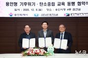 (뉴스핏 = 김수진 기자) 용인특례시는 8일 시청 접견실에서 강남대학교, 용인예술과학대학교와 ‘용인형 기후위기·탄소중립 교육 동행 협약’을 체결했다. 이날 협약식은 기후위기에 공동으로 대응하고, 지속가능한 지역사회 발전과 미래 세대 양성을 위해 마련됐다. 협약의 주요 내용은 ▲탄소중립‧기후 위기 대응 교육프로그램 공동 개발‧운영 ▲교육봉사‧멘토링 등 교원‧전문가‧학생 간 교류와 연계 활동 지원 ▲지역사회 대상 탄소중립 홍보‧캠페인‧체험 교육 공동 추진 ▲교육시설‧인프라 상호 활용 등이다. 협약에 따라 시와 두 대학은 탄소중립 사회 실현을 위한 교육 모델을 구축한다는 방침이다. 각 대학의 유아교육과 인력과 연계해 교육봉사 기회를 확대하고, 신규 프로그램을 공동 개발해 용인지역 학생들을 탄소중립 실천 의지를 가진 인재로 육성하고, 시민의 환경 감수성을 높이는 데도 이바지하겠다는 계획이다. 이에 따라 오는 12일 용인예술과학대 유아교육과 연극동아리가 기후변화체험교육센터에서 아동 30명을 대상으로 관련 연극을 진행한다. 이상일 시장은 “기후 위기는 글로벌 차원의 가장 중대한 문제인 만큼 기후 위기에 대응하기 위해 중앙‧지방정부, 대학, 각 기관 등이 서로 협업 시스