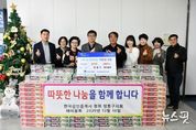 (뉴스핏 = 김호 기자) 지난 10일 수원시 영통구 매여울회에서 관내 어려운 이웃을 돕기 위해 컵라면 200박스를 기부했다. 수원시 영통구 매탄동 소재 공인중개사 모임인 매여울회는 매년 꾸준히 지역사회의 어려운 이웃을 위해 물품을 지원하며 따뜻한 나눔을 실천하고 있다. 이날 전달된 물품은 기부자의 뜻에 따라 관내 도움이 필요한 취약계층 세대에게 배부될 예정이다. 매여울회 관계자는 "한 해를 따뜻한 나눔 활동으로 마무리할 수 있어 매우 뜻깊다”며 “추운 겨울, 컵라면의 온기처럼 어려운 이웃들에게 조금이나마 도움이 되기를 바란다”고 전했다. 장수석 영통구청장은 "지속적인 나눔을 실천해 주시는 분들의 마음에 진심으로 감사드린다”며 “기부해 주신 물품은 도움이 필요한 복지 사각지대의 이웃에게 잘 전달하겠다”고 말했다.