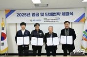 (뉴스핏 = 김호 기자) 여주도시공사와 민주노총 공공운수노조 여주도시공사지회는 9일 여주도시공사 사옥에서 2025년 임금 및 단체협약 체결식을 개최했다고 밝혔다. 이번 협약은 상호 신뢰와 존중을 바탕으로 진행된 성실한 교섭의 결실로, 노사 상생과 지속 가능한 발전을 위한 중요한 발판이 될 전망이다. 공사와 노동조합은 이번 협약을 통해 직원들이 안정적인 근무여건 아래 역량을 발휘할 수 있는 환경을 조성하고, 공공기관으로서 사회적 책임을 다하기 위한 제도 개선과 협력 체계를 강화해 나갈 방침이다. 임명진 사장은 “이번 임금·단체협약은 노사 간 소통과 이해를 바탕으로 이루어낸 결실”이라며, “앞으로도 신뢰 기반의 노사 협력을 통해 시민에게 더 나은 공공서비스를 제공할 수 있도록 노력하겠다"고 밝혔다. 여주도시공사는 앞으로도 합리적인 노사관계 정착을 위해 소통과 협력을 강화하고, 시민 중심의 공기업으로서 책임과 역할을 다하기 위한 다양한 노력을 이어갈 계획이다.