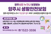 (뉴스핏 = 김호 기자) 양주시가 시민들이 각종 재난 또는 안전사고로 상해를 입었을 경우 보험금을 청구할 수 있는 ‘생활안전보험’을 갱신 가입했다. 양주시에 주민등록이 되어있는 시민(등록외국인 포함)은 별도의 가입절차 없이 보험에 자동 가입되며, 사고 발생 시 보험금을 청구할 수 있다. 보장 항목으로는 ▲상해 사망(교통상해 제외) ▲자전거사고 사망 ▲자연재해상해 진단위로금(일사병, 열사병 포함) ▲사회재난상해 진단위로금(감염병 제외) ▲스쿨존 교통상해 부상치료비 ▲노인보호구역 교통상해 부상치료비 ▲상해 진단위로금(교통상해, 자연재해 및 사회재난 제외) ▲자전거사고 상해진단위로금 ▲가스사고 사망 ▲가스사고 후유장해 ▲폭발·화재·붕괴·산사태 사고 재난비용 등 총 11개 항목이다. 특히 올해부터는 보장 항목과 보장 금액이 확대됐다. 자전거 사고로 인한 상해 진단위로금은 기존 10만 원에서 진단 주수별로 최대 30만 원까지 상향됐으며, 가스사고 사망 및 후유장해 항목과 노인보호구역 교통상해 부상치료비 항목은 새롭게 신설됐다. 생활안전보험은 사고 발생일로부터 3년 이내에 신청해야 하며, 피해를 입은 시민이