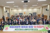 (뉴스핏 = 김호 기자) 여주시 세종대왕면에서 체육회장 이·취임식이 열려 지역 체육 발전을 위한 새로운 출발을 알렸다. 지난 2일 세종대왕면 복지회관에서 열린 이번 행사에는 지역 체육인과 기관·단체장 등 120여 명이 참석해 자리를 빛냈다. 이날 행사에서는 이임 회장인 오세학의 노고를 기리고, 신임 회장인 최은철의 취임을 축하하는 뜻깊은 시간이 마련됐다. 이·취임식에는 이충우 여주시장을 비롯해 서광범 경기도의원, 박두형 여주시의회의장, 정병관, 이상숙 여주시의원 및 세종대왕면의 주요 인사들이 참석해 축사를 전하며 지역 체육회의 발전을 기원했다. 특히 이충우 시장은 축사를 통해 “세종대왕면 체육회가 지역 주민의 건강 증진과 화합을 이끄는 중요한 역할을 해왔다”며 “앞으로도 체육회를 중심으로 주민들이 더욱 활기차고 행복한 공동체를 만들어가길 기대한다”고 말했다. 오세학 이임 회장은 이임사에서 “그동안 체육회 발전을 위해 함께해 준 모든 분들께 깊이 감사드린다”며 “앞으로도 지역 체육이 더욱 활성화되길 바란다”고 말했다. 이어 최은철 신임 회장은 취임사를 통해 “세종대왕면 체육회가 지역 주민 화합과 건강 증진의 중심이 되도록 최선을 다하겠다”며 “생활체육 활성화와