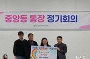 (뉴스핏 = 김호 기자) 중앙동통장협의회는 2월 9일 열린 중앙동 통장 정기회의에서 중앙동행정복지센터에 이웃돕기 성금 200만 원을 기탁하며 지역사회 나눔 실천에 앞장섰다. 이번 성금은 중앙동지역사회보장협의체를 통해 관내 도움이 필요한 이웃을 위한 각종 복지사업에 사용될 예정으로, 복지 사각지대 해소와 취약계층 지원에 실질적인 도움이 될 것으로 기대된다. 중앙동통장협의회는 지역 주민과 행정을 잇는 가교 역할을 수행하며, 평소에도 복지대상자 발굴, 행정 협조, 지역 현안 공유 등 다양한 활동을 통해 지역사회 발전에 기여해 오고 있다. 이성우 통장협의회장은 “지역 곳곳에서 어려움을 겪고 있는 이웃들에게 조금이나마 힘이 되기를 바라는 마음으로 회원들의 뜻을 모았다”며, “앞으로도 중앙동통장협의회는 주민과 가장 가까운 곳에서 이웃을 살피고, 나눔과 협력의 가치를 실천해 나가겠다”고 말했다. 심우봉 중앙동장은 “지역사회를 위해 따뜻한 마음을 전해주신 중앙동통장협의회에 깊이 감사드린다”며, “기탁해 주신 성금은 중앙동지역사회보장협의체를 통해 취지에 맞게 사용하여 도움이 필요한 이웃들에게 실질적인 지원이 이루어