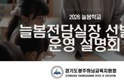 (뉴스핏 = 김수진 기자) 경기도광주하남교육지원청은 6일 관내 초등학교 교원을 대상으로‘2026 늘봄전담실장 선발 및 운영 설명회’를 온라인 화상회의 방식으로 개최했다. 이번 설명회는 늘봄전담실장 제도에 대한 이해를 높이고, 현장 중심의 정책 추진 방향을 공유하기 위해 마련됐다. 설명회에서는 △2026년 늘봄전담실장 임용후보자 선발 공개전형 시행 요강 △늘봄학교 정책 방향 및 추진 현황 △늘봄전담실장의 주요 직무와 역할 △거점형 늘봄센터 운영 체계 등 실질적인 내용을 중심으로 안내가 이루어졌다. 특히 1기 늘봄전담실장이 직접 참여해 학교별 운영 사례와 경험을 공유함으로써, 참여 교원들이 현장의 실제 운영 방식과 역할 수행의 구체적인 모습을 이해할 수 있는 뜻깊은 시간이 됐다. 현재 광주하남교육지원청 관내에는 총 17명의 늘봄전담실장이 49개 학교의 늘봄학교 운영을 지원하고 있으며, 내년에는 2기 늘봄전담실장 추가 선발을 통해 학교별 맞춤형 지원 체계를 한층 강화할 예정이다. 오성애 교육장은 “이번 설명회가 늘봄전담실장의 전문성과 현장 지원 역할을 널리 알리는 계기가 되길 바란다”며, “학교 현장에서 함께 성장하는 늘봄학교의 가치를 지속적으로 확산해 나가겠다”