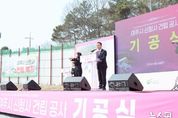 (뉴스핏 = 김호 기자) 여주시는 26일 가업동 신청사 건립 부지에서 ‘여주시 신청사 건립 공사 기공식’을 개최하고 지난 20여 년간 시민들의 숙원이었던 신청사 건립 사업의 본격적인 시작을 알렸다. 이번 기공식은 여주시가 공론화위원회를 구성하고 숙의 토론이라는 공론화 과정을 거쳐 가업동으로 신축 이전을 확정하고, 착공에 필요한 모든 행정절차를 마친 3년 9개월 동안의 신청사 건립 추진 경과와 향후 공사 계획을 주민들과 공유하기 위해 열렸다. 이날 행사는 신청사 착공을 축하하는 시민들의 축하 영상을 시작으로 신청사 건립 사업 동영상 상영, 신청사 건립 추진 경과보고, 여주시민합창단의 축하공연 순으로 이어졌다. 총 4만 7천㎡ 부지에 지하 1층 지상 7층 규모로 조성되는 신청사는 그동안 청사 분산으로 인한 시민의 불편을 개선해 행정서비스의 질을 한층 높이는 한편, 부족했던 주차 공간 또한 600면으로 대폭 확대해 주민의 이용 불편을 해소한 행정 복합 공간으로 설계됐다. 또한 신청사를 중심으로 약 48만 5천㎡ 규모의 여주역세권 제2지구 도시개발사업을 함께 추진하고 있어 여주의 새로운 중심축이 더욱 확장