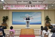 (뉴스핏 = 김호 기자) 동두천시는 1일 시청 대회의실에서 4월 명예시장으로 위촉된 조황래 동두천중앙성모병원 원장과 전 직원이 참석한 가운데 월례조회를 개최했다. 이날 식전 공연에서는 송내동 주민자치 프로그램 댄스트롯장구팀의 재능 기부로 춤과 노래를 선보여 분위기를 더했다. 박형덕 동두천시장은 제19회 암 예방의 날 유공 공무원 1명(▲훈격 장관)과 자원봉사 활동 유공 시민 1명(▲훈격 도지사)에게 표창을 전수했다. 또한, 통합방위지원태세 업무 유공 시민 2명, 시정발전 유공 시민 20명에게 표창을 수여했으며, 2025년도 주요업무 자체평가 15개 부서에 각각 상장을 수여하고 격려했다. 훈시 사항으로는 첫째, 시민들의 야외 활동이 본격화되는 시기인 만큼 산불 예방과 화재 안전관리에 만전을 기해 달라고 했다. 둘째, 국제유가와 물가 급등으로 서민 경제가 그 어느 때보다 힘든 시기인 만큼 민생 안정을 위해 따뜻한 나눔 행정을 펼쳐줄 것을 강조했다. 끝으로, 시정 발전을 위해 멈추지 않는 혁신을 이어 나가자고 독려했다. 그 일환으로 10년간 방치됐던 소요산 축산물 브랜드육타운을 휴식과 관광이 어우러진 복합문화공간으로 재탄생시키고자 SBS 본사에서 업무협약을 체결했