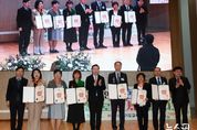 (뉴스핏 = 김수진 기자) 경기도교육청이 27일 경기과학고등학교 대강당에서 퇴직 교원 727명을 대상으로 훈․포장과 표창장 전수식을 거행했다. 오랜 기간 학생 교육을 위해 헌신한 퇴직 교원들의 노고를 기리고, 존경과 감사를 표하기 위해 마련한 자리다. 훈격별 훈․포장 대상자는 ▲황조근정훈장 85명 ▲홍조근정훈장 212명 ▲녹조근정훈장 151명 ▲옥조근정훈장 108명 ▲근정포장 81명이며, 표창 대상자는 ▲대통령표창 25명 ▲국무총리표창 21명 ▲교육부장관표창 44명이다. 전수식에는 임태희 교육감을 비롯해 김진수 제1부교육감, 홍정표 제2부교육감, 도교육청 주요 관계자 등이 참석하여 퇴직 교원의 영광스러운 순간을 축하했다. 또한 가족과 동료 등도 함께 참석해 퇴직 교원의 영예로운 훈․포장 및 표창장 전수를 축하했다. 전수식은 ▲축하 공연 ▲추억과 희망 나눔의 시간 ▲임태희 교육감의 축사 ▲훈․포장 및 표창장 수여 ▲소감 발표 ▲기념 촬영 순으로 이어졌다. 특히 추억과 희망 나눔의 시간에는 전수 대상자들이 제공한 사진으로 ‘교직 생애 가장 기억에 남는 순간’을 영상으로 상영해 참석자들의 큰 박수를 받았