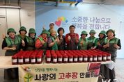 (뉴스핏 = 김수진 기자) 오산시 새마을지도자 신장1동 부녀회가 지난 31일 신장1동 행정복지센터 지하식당에서 직접 담근 고추장을 취약계층에 전달하며 이웃사랑을 실천했다고 밝혔다. 이번 나눔 행사는 신장1동 새마을부녀회와 새마을지도자협의회 회원들이 함께 참여해 전통 방식으로 고추장을 담그고, 이를 2kg씩 정성껏 포장해 관내 취약계층 90가구에 전달하는 방식으로 진행됐다. 임서연 신장1동 새마을부녀회장은 “직접 담근 고추장을 이웃들과 나눌 수 있어 더욱 뜻깊다”며 “작은 정성이지만 맛있게 드시고 건강하게 지내시길 바란다”고 말했다. 이명숙 신장1동장은 “매년 정성껏 담근 장으로 나눔을 실천해 주시는 새마을부녀회와 새마을지도자협의회에 깊이 감사드린다”며 “앞으로도 민관이 함께하는 나눔 활동을 지속적으로 추진해 따뜻한 공동체를 만들어 나가겠다”고 밝혔다. 한편 신장1동 행정복지센터는 지역사회 복지 증진과 주민 화합을 위해 다양한 봉사와 나눔 활동을 꾸준히 이어가고 있으며, 앞으로도 이웃과 함께하는 따뜻한 행정을 실현해 나갈 계획이다.