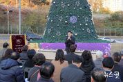 (뉴스핏 = 김수진 기자) 용인특례시는 22일 오후 기흥구 영덕동 산 1-1번지에서 ‘크리스마스트리 점등식’ 행사가 열렸다고 23일 밝혔다. 기흥구기독교연합회가 주관한 이 행사에는 이상일 시장을 비롯해 용인지역 교회 관계자 약 40여명이 참석했다. 이날 점등한 크리스마스트리는 내년 1월까지 희망과 사랑의 빛을 밝혀준다. 이 행사에서 기흥구기독교연합회는 어려운 이웃을 위해 사용해달라며 기흥구에 라면 200박스를 기탁했다. 이상일 시장은 축사를 통해 “오늘 우리가 밝히는 성탄트리가 이곳을 지나는 분들에게 세상의 빛으로 오신 아기 예수님 탄생의 의미를 잘 전달하기를 소망한다”며 “시민들이 성탄절을 맞아 좀 더 넉넉한 마음으로 서로를 더 많이 배려하고 어두운 곳에 사랑을 많이 전달하면 좋겠다”고 말했다.