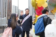 (뉴스핏 = 김수진 기자) 김성제 경기 의왕시장이 3일 의왕푸른초등학교의 개교를 맞아 학생들의 첫 등교를 축하했다. 이날 ‘의왕푸른초등학교 개교맞이 행사’에는 김성제 시장을 비롯해 정숙경 군포의왕교육지원청 교육장과 조광현 의왕경찰서 서장 등 지역 관계자가 함께했으며, 참석자들은 교문 앞에서 학생 한 명 한 명에게 인사를 건네며 새 학교에서의 힘찬 출발을 응원했다. 아울러, 학생들의 안전한 등하굣길을 위한 교통안전 캠페인도 현장에서 진행하며 행사의 의미를 더했다. 김성제 시장은 “의왕푸른초등학교가 안전한 환경에서 아이들이 마음껏 성장하고 역량을 펼칠 수 있는 배움터가 되도록 관련 지원에 최선을 다하겠다”고 밝혔다. 한편, 총 13학급 규모로 개교한 의왕푸른초등학교는 고천공공주택지구 내 입주민 자녀들의 초등교육 수요를 충족하며, 지역사회 교육 발전에 기여할 것으로 기대된다.